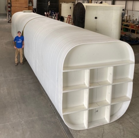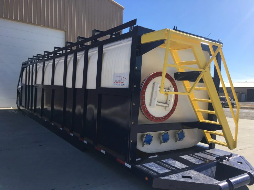 Our molds produce rectangular plastic tanks up to 18,000 gallons in capacity. Our rectangular tanks are structurally sound, require little maintenance, and feature one-inch thick sturdy walls and 1.5-inch thick end walls. Because of their shape, rectangular tanks can offer tremendous cost savings for shipping compared to cylindrical tanks.